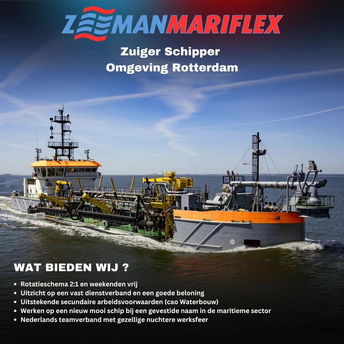Ben jij een ervaren Rating AB en op zoek naar een nieuwe uitdaging in de maritieme sector? Voor een gerenommeerd Nederlands baggerbedrijf, gespecialiseerd in vaarwegonderhoud met moderne hopperzuigers, zijn wij per direct op zoek naar een gemotiveerde Rating AB / Cook. Met jouw ervaring en vakkennis draag je bij aan het veilig en efficiënt uitvoeren…