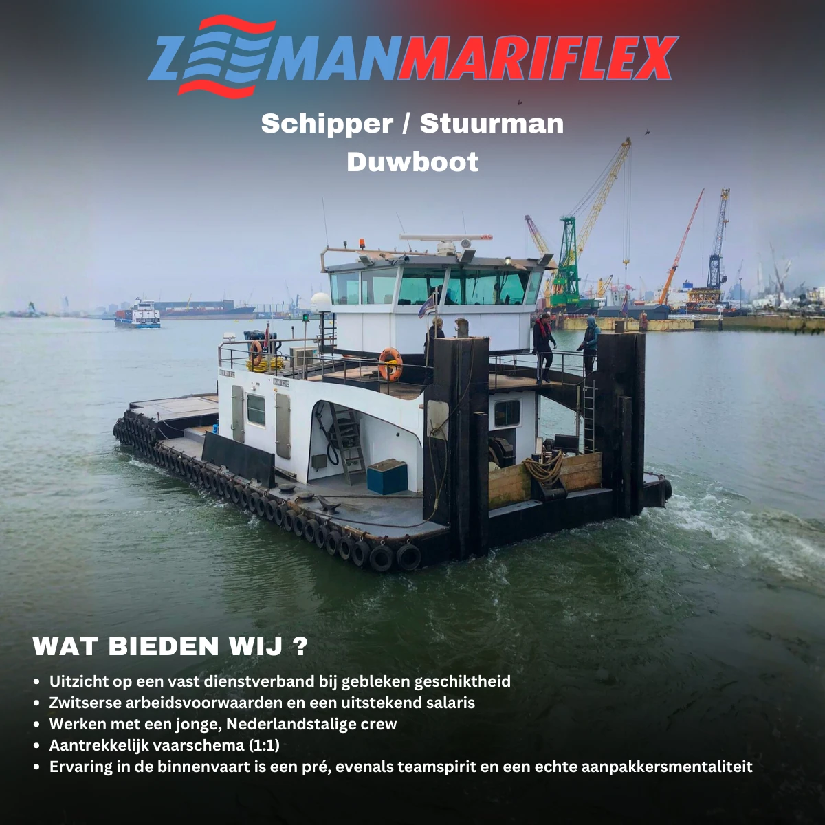 Voor een opdrachtgever zijn wij op zoek naar een schipper of stuurman voor een duwboot. Ben jij een ervaren binnenvaartprofessional en werk je graag in een hecht team aan boord van een goed georganiseerd schip? Dan komen wij graag met je in contact.