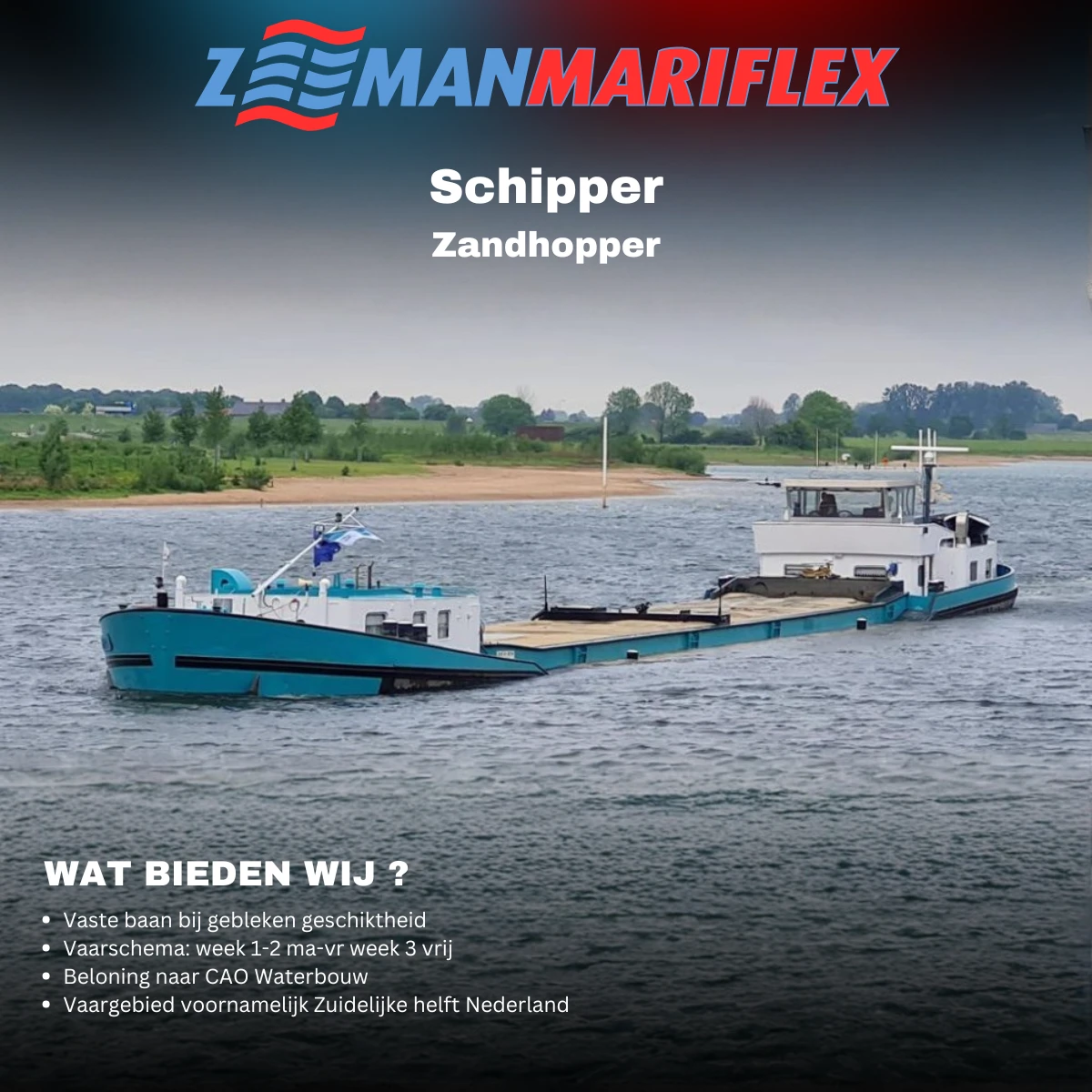 Voor één van onze opdrachtgevers zijn wij op zoek naar een ervaren Schipper voor een zandhopper.